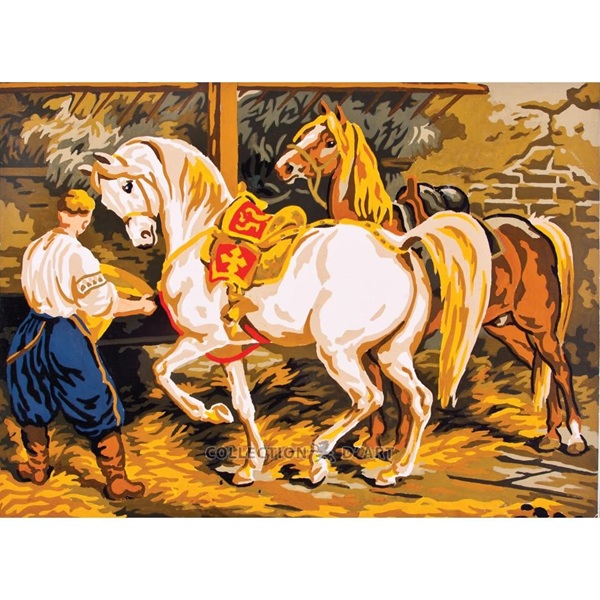 Канва с рисунком AIDA-11 арт.6075/Кони 30×40см