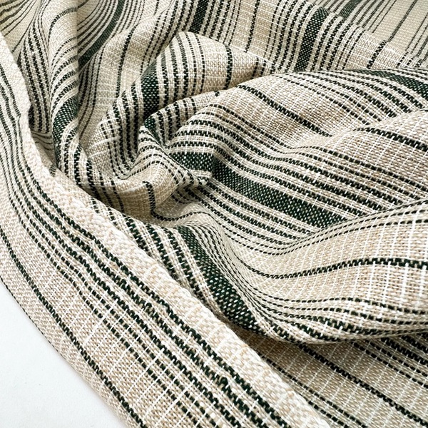 Костюмная ткань арт.ТК-123 цвет: льняной с зелеными полосками, цена за 50см